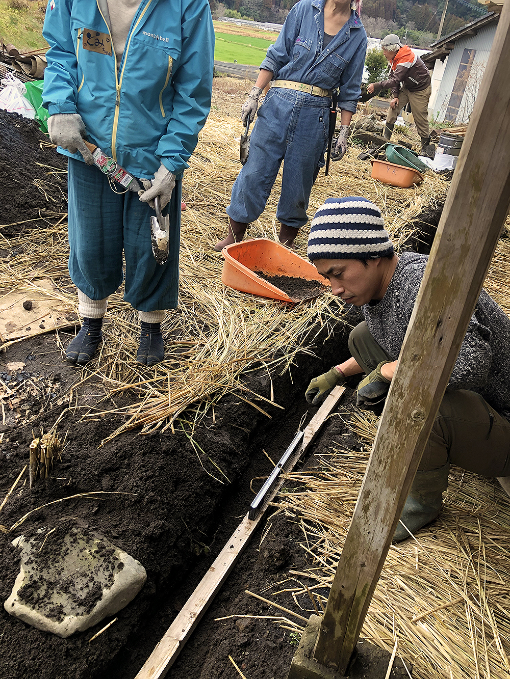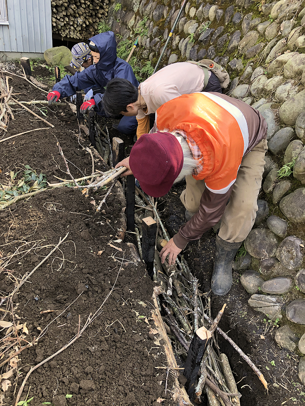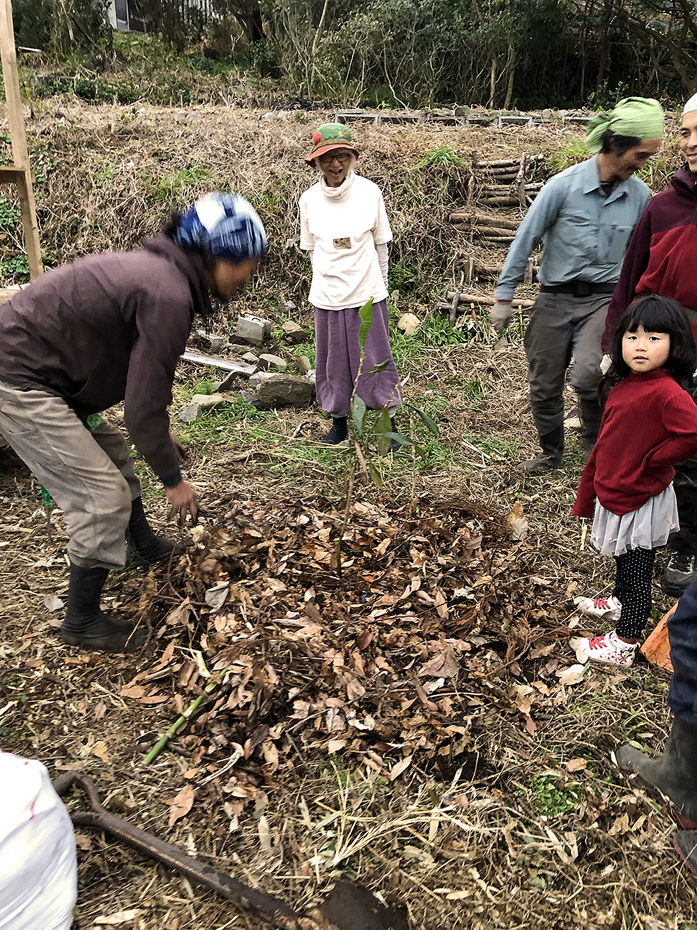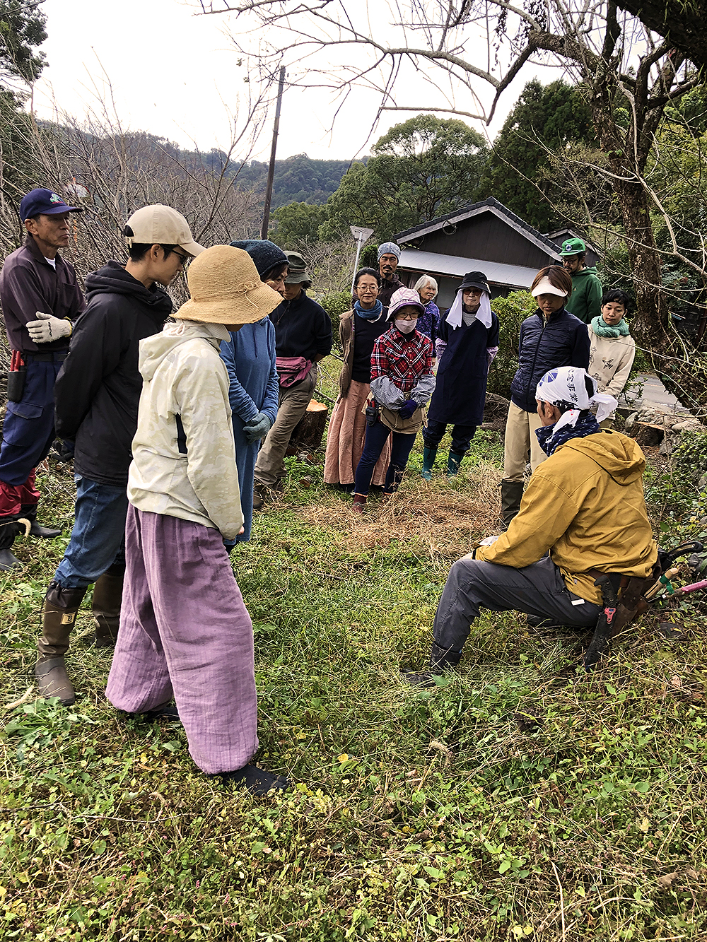 およそ半年の期間を通して、風の草刈り、土壌の水の道づくり、植栽ワークショップを継続して行っていきました。講師には宮崎県美郷町にお住まいの上村洋平氏をお迎えしました。一つ一つの家庭から大地を整える方法を伝えていただきました。そして、たくさんのボランティアのご協力のおかげで、運営を支えてくださいました。