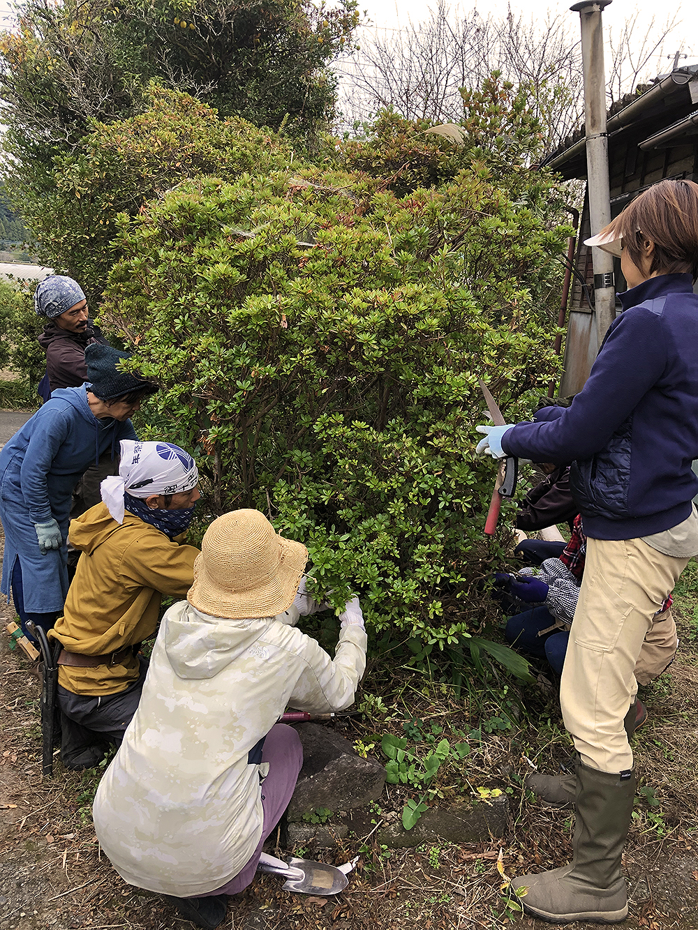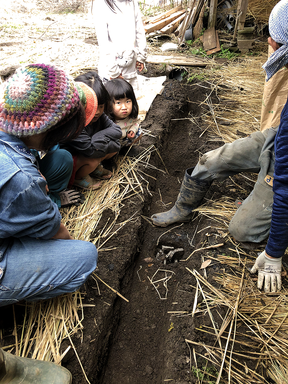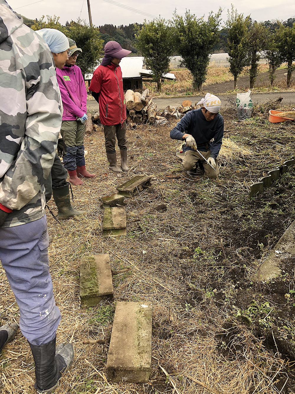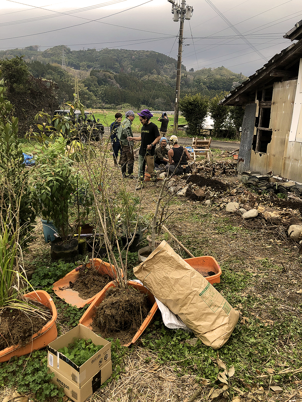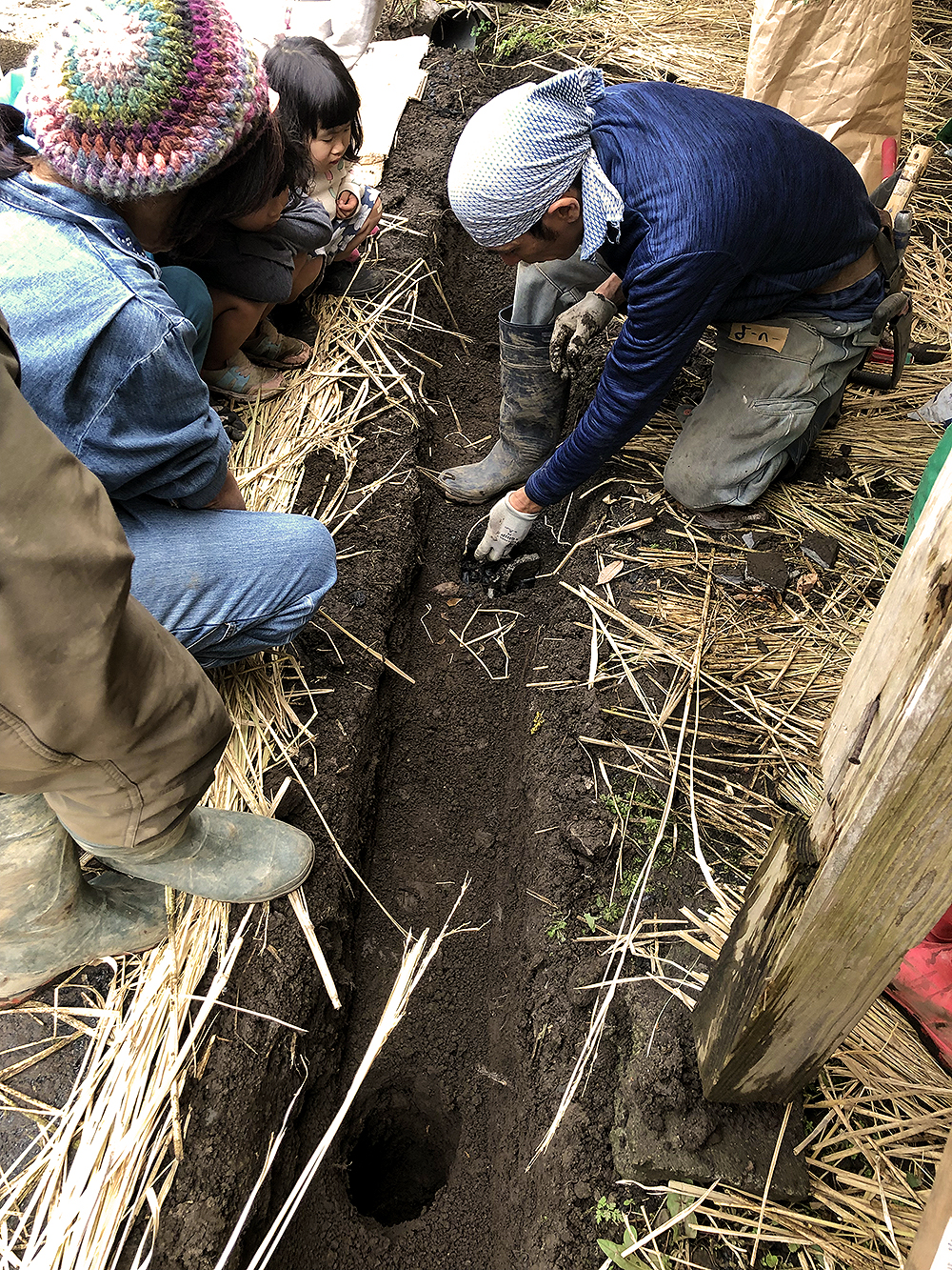 およそ半年の期間を通して、風の草刈り、土壌の水の道づくり、植栽ワークショップを継続して行っていきました。講師には宮崎県美郷町にお住まいの上村洋平氏をお迎えしました。一つ一つの家庭から大地を整える方法を伝えていただきました。そして、たくさんのボランティアのご協力のおかげで、運営を支えてくださいました。