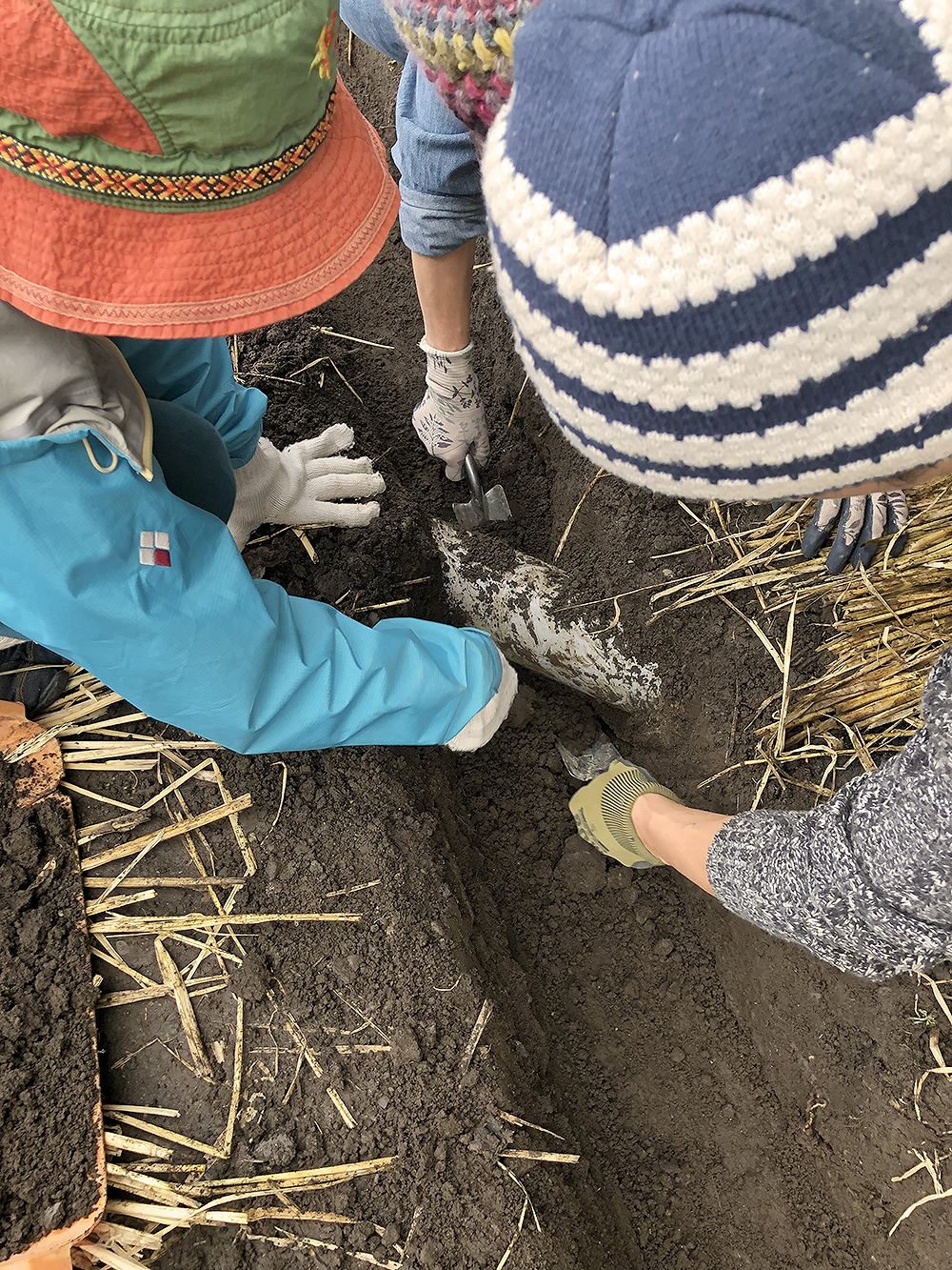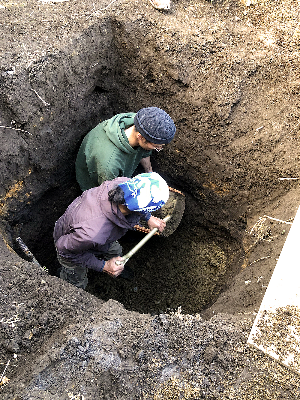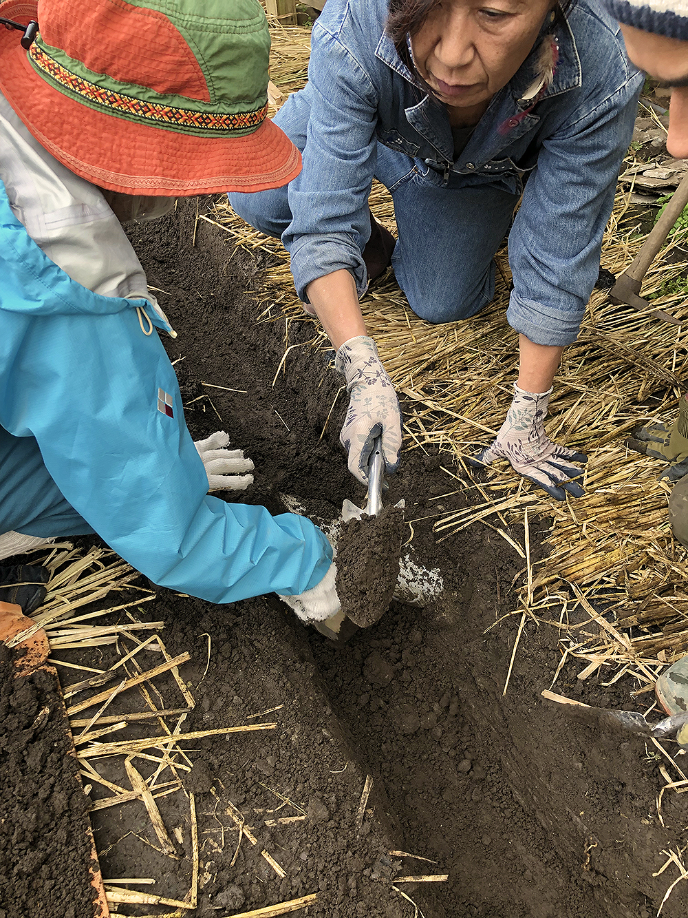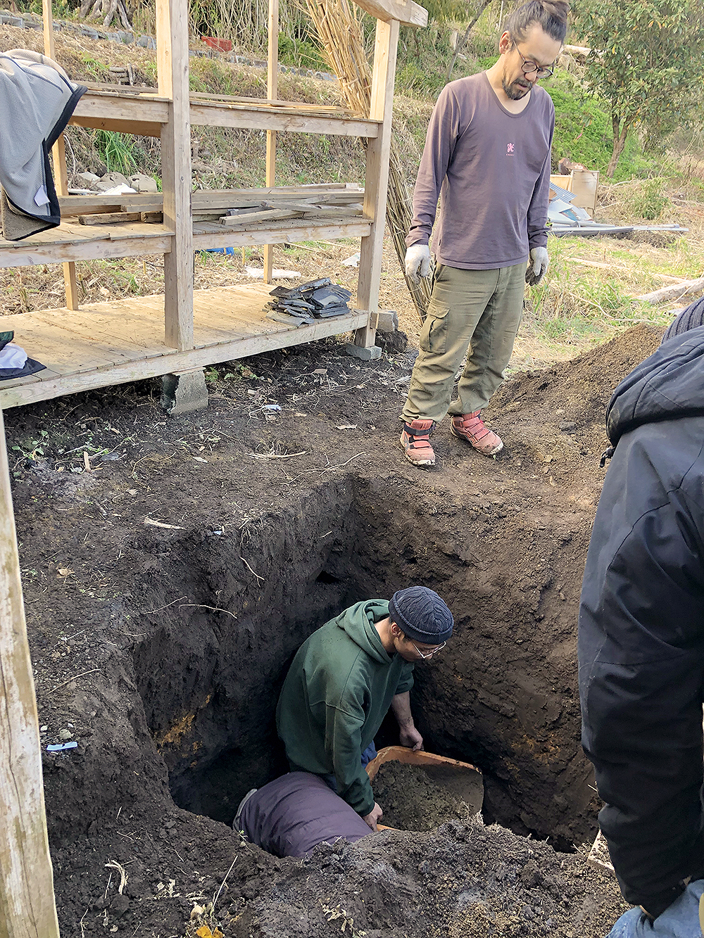 およそ半年の期間を通して、風の草刈り、土壌の水の道づくり、植栽ワークショップを継続して行っていきました。講師には宮崎県美郷町にお住まいの上村洋平氏をお迎えしました。一つ一つの家庭から大地を整える方法を伝えていただきました。そして、たくさんのボランティアのご協力のおかげで、運営を支えてくださいました。