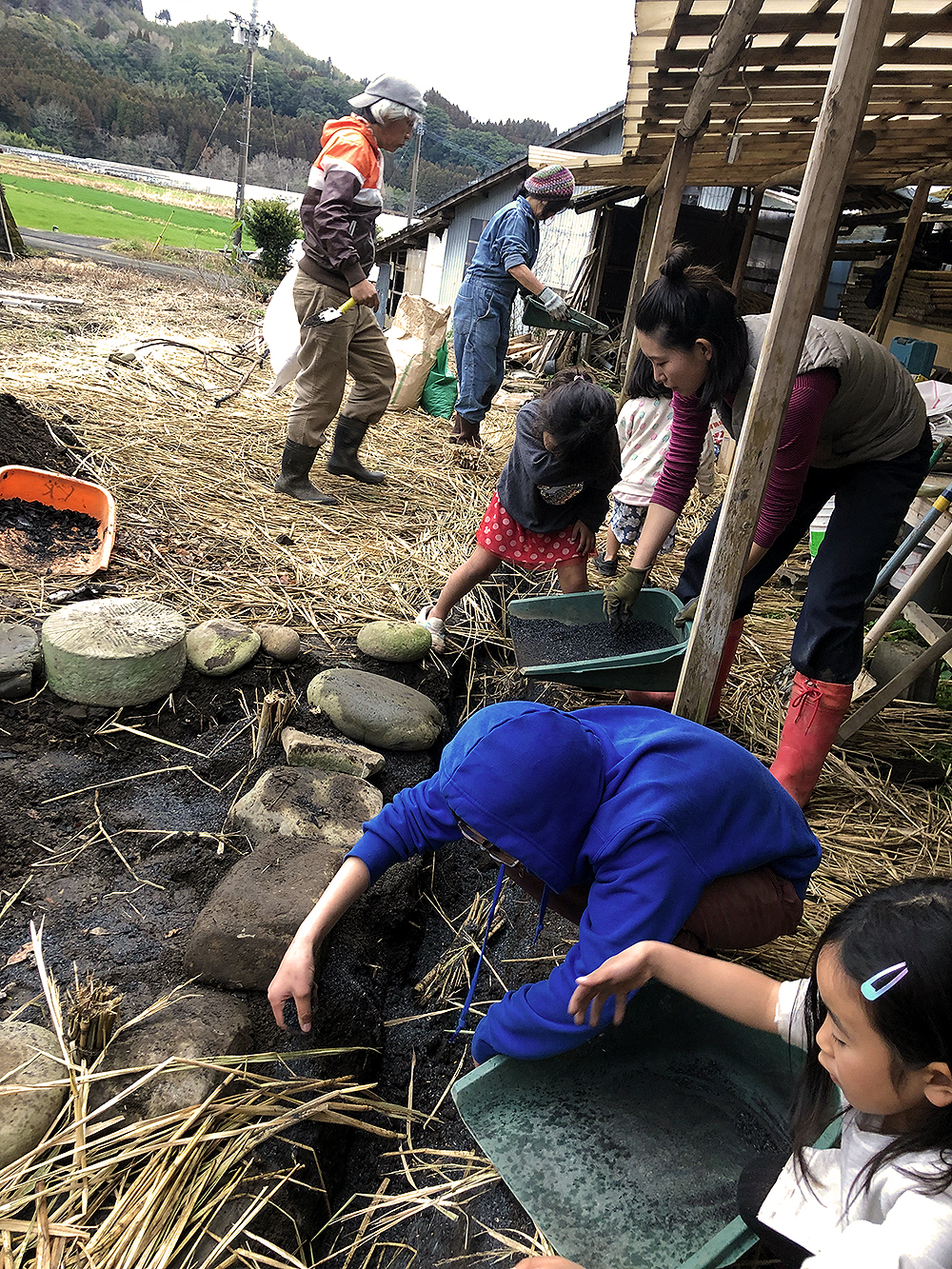 2022年11月13日、綾町オタフィフィを会場に大地再生ワークショップとして映画「杜人」の上映会が開催されました。それに続くように、映画内で行われていた「山から海をきれいにする風と水の通り道づくり」を参考に、庭先でできる大地再生ワークショップを開催しました。